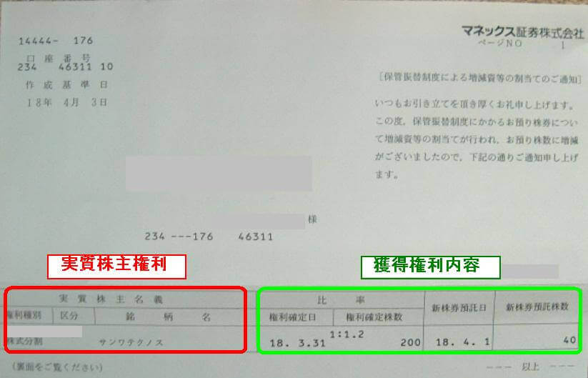 株主権利である配当金や株式分割などの権利はきちんと行使されます。